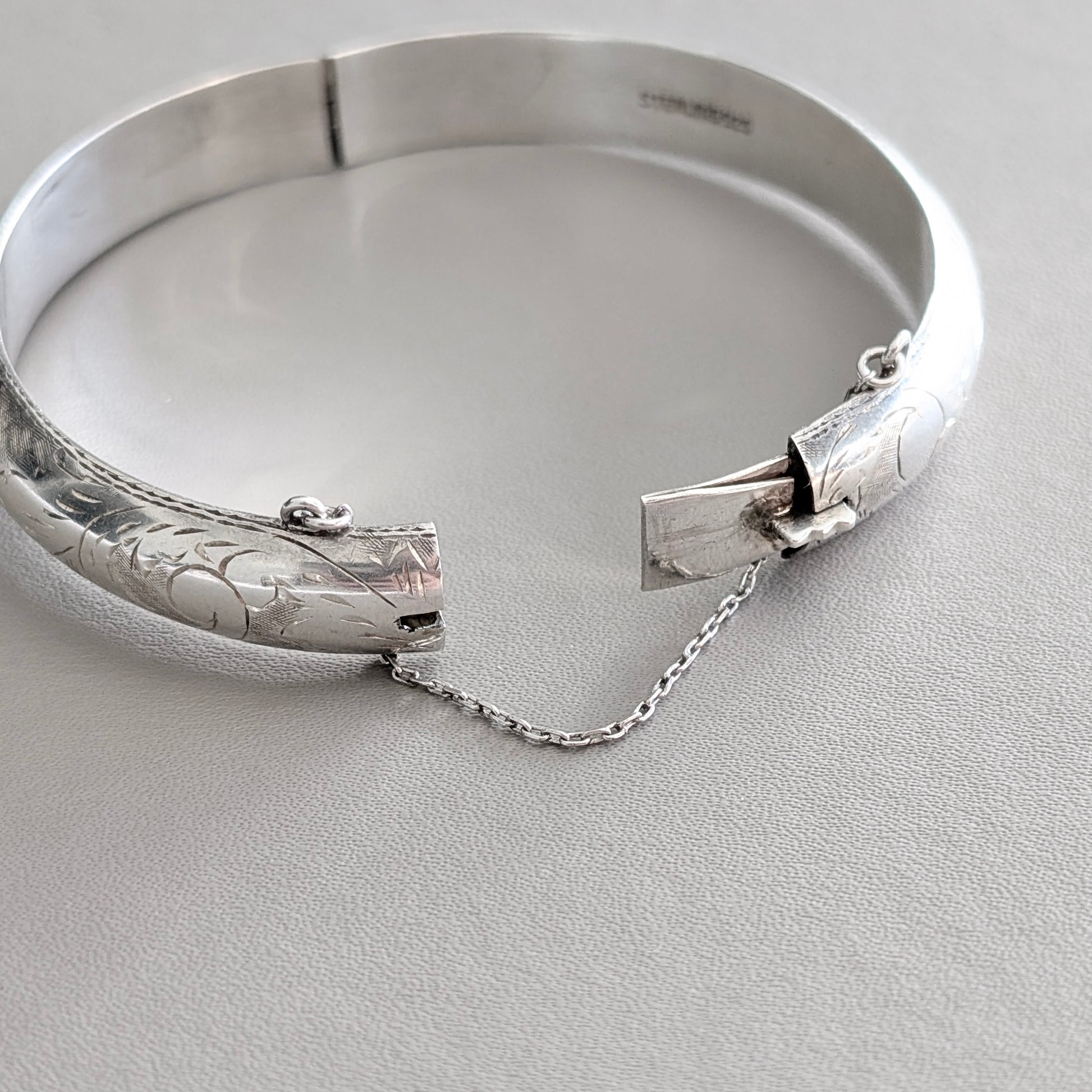 A Hinged Sterling Silver Bangle with Engraved Design