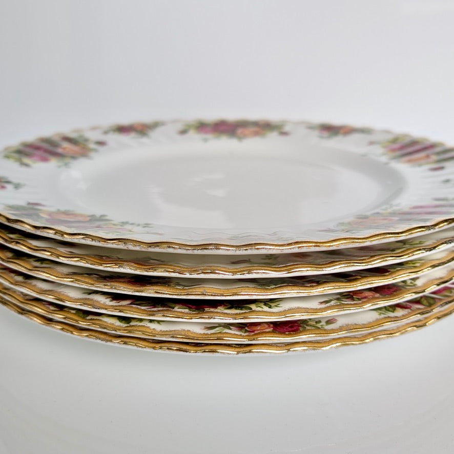 A set of six (6) original Royal Albert 'Old Country Roses' bone china dinner plates.