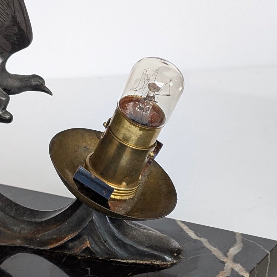 An Art Deco French Spelter & Marble Seagull lamp, c1930