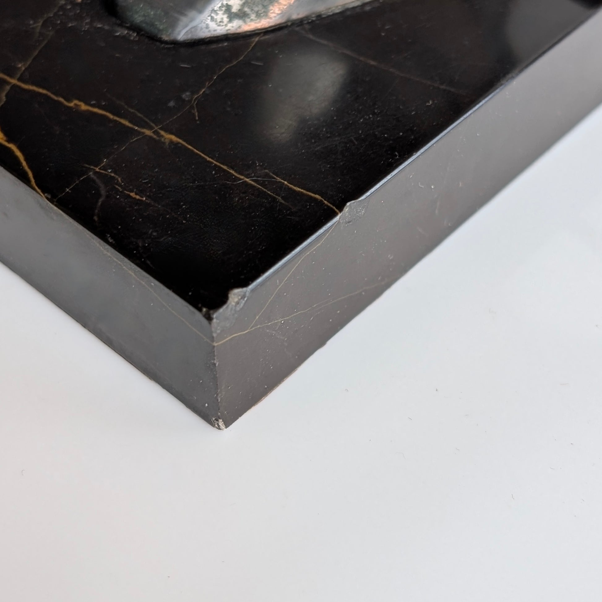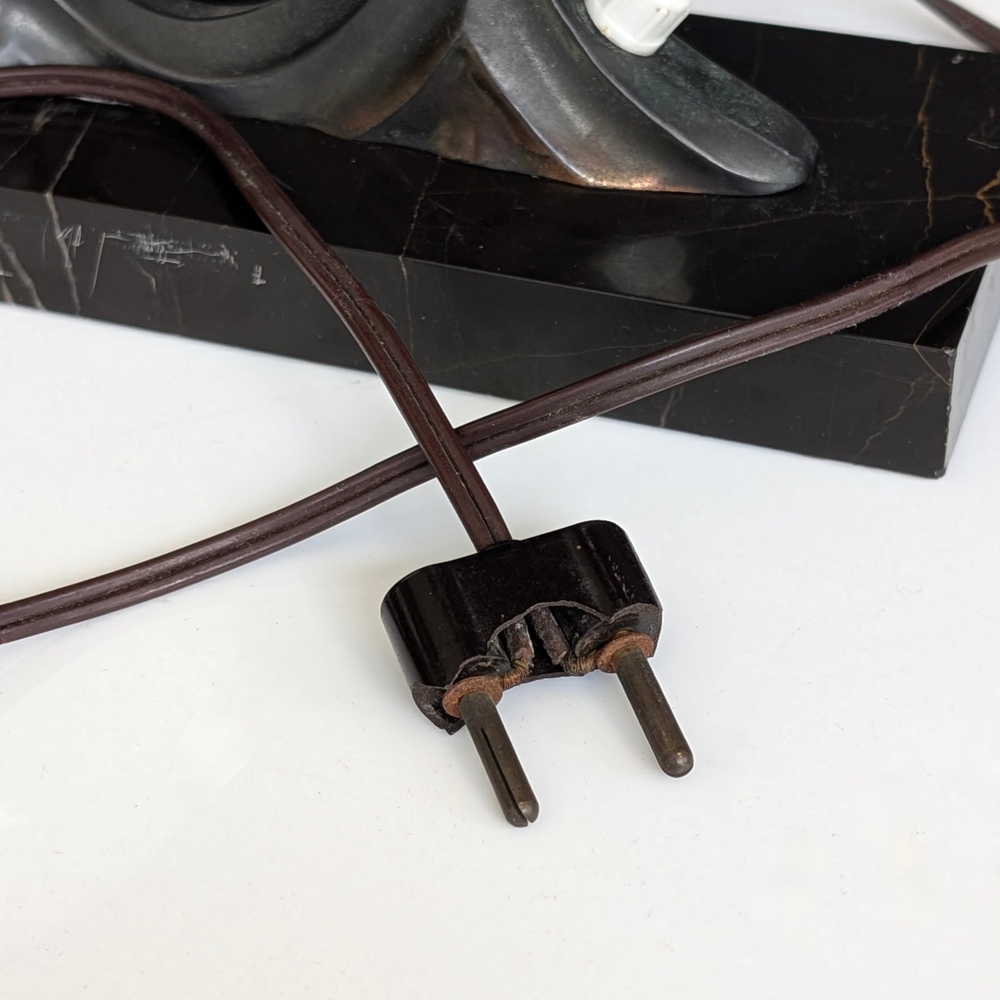 Condition: Two small chips to the corner of back of marble base. Original wiring and hardware presents age-related wear.