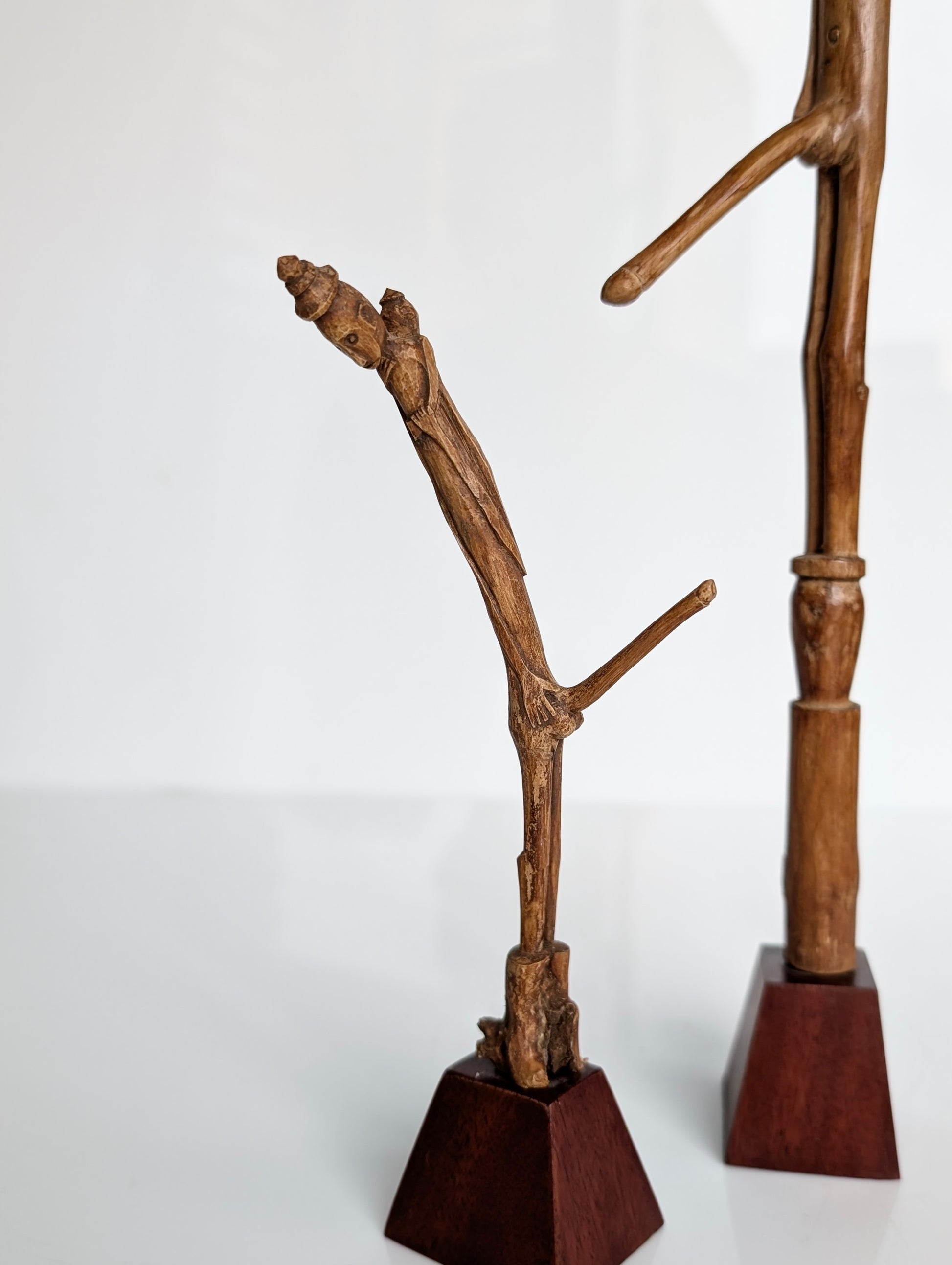 Two Carved Wood Fertility Charms by the Iban Dayak People from Samarinda, Borneo
